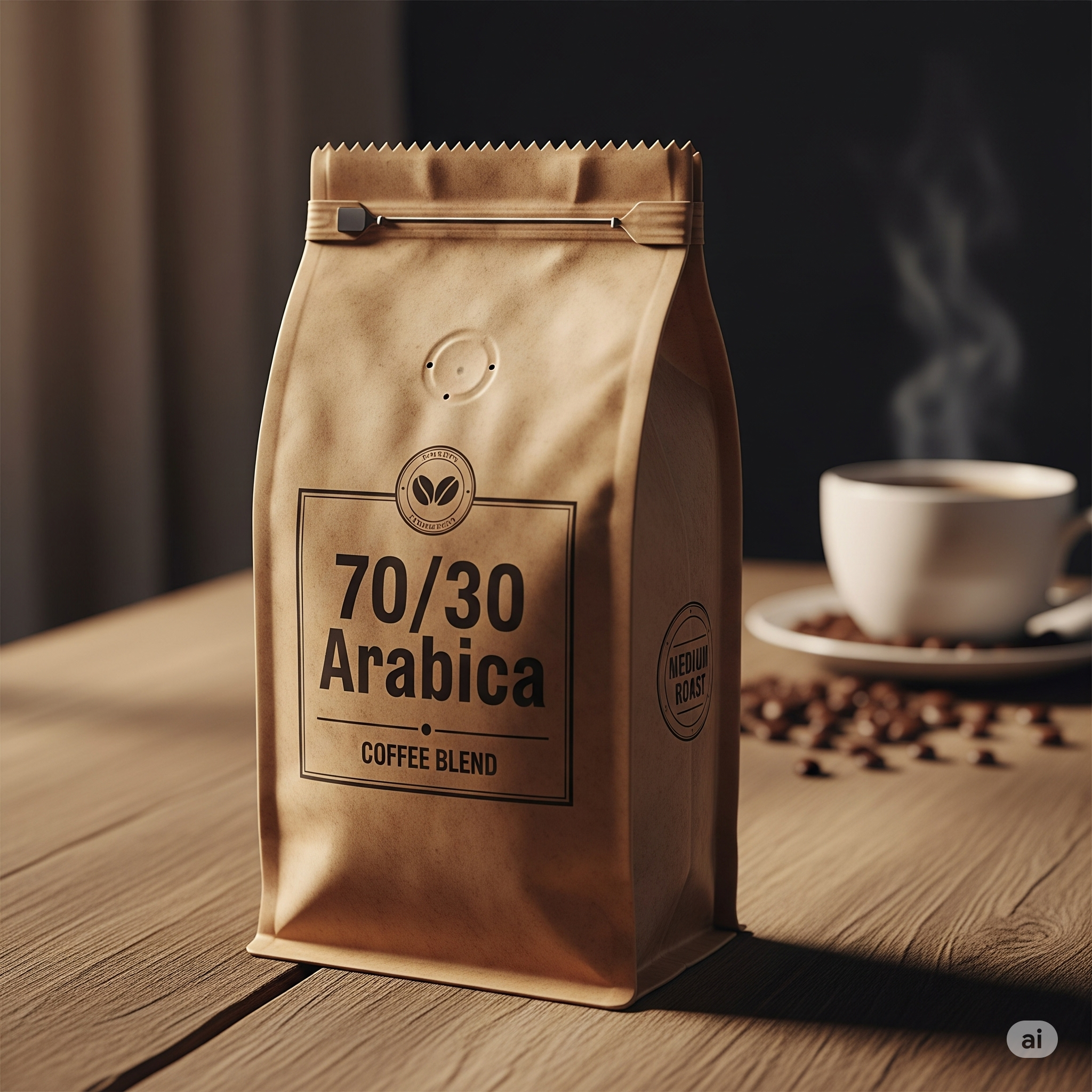 قهوه ترکیبی ۷۰/۳۰ عربیکا – لطافت بیشتر با اندکی قدرت قهوه ترکیبی ۷۰٪ عربیکا و ۳۰٪ روبوستا برای افرادی مناسب است که میخواهند عطر و طعم غنی عربیکا را تجربه کنند و در عین حال کمی بدنه و کرمای روبوستا نیز داشته باشند. این ترکیب، طعم متعادل و دلنشین با کمی قدرت و انرژی ارائه میدهد.ویژگیها:شدت طعم: ملایم تا متوسط عطر و طعم: شکلات شیری، کارامل، مغز برشته، یاد میوههای خشک کافئین: متوسط رو به بالااسیدیته: متعادل کاربرد: مناسب برای اسپرسو، موکاپات، قهوه فرانسه و قهوه ترک این ترکیب بهترین گزینه برای کسانی است که میخواهند لطافت و رایحه عربیکا غالب باشد و در عین حال کمی قدرت و بدنه روبوستا نیز در فنجان خود تجربه کنند.