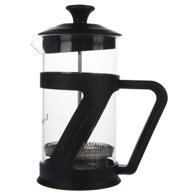 فرنچ پرس شیشهای با بدنه شیشهای شفاف، پایه پلاستیکی و توری فلزی برای دمآوری قهوه یا چای با عطر و طعم اصیل. ارتفاع 20 سانتیمتر، قطر 8.5 سانتیمتر، وزن سبک، مناسب برای خانه، دفتر کار یا کافههای کوچک. دارای درپوش پلاستیکی و دسته ارگونومیک، همراه با پایهای پایدار برای استفاده راحت.بدنه شیشهای شفاف برای مشاهده کامل فرآیند دمآوری پایه پلاستیکی پایدار برای جلوگیری از واژگونی توری فلزی برای فیلتر مناسب رسیده به نوشیدنی درپوش پلاستیکی برای جلوگیری از پاشش هنگام پرس طراحی ساده و کاربرپسند مناسب استفاده روزمره.مناسب برای دمآوری فرنچ پرس قهوه و همچنین چای امکان استفاده با آسیاب قهوه درشت تا متوسط فرآیند پرس با کارایی مناسب برای عصارهدهی ثابت مواد سازگار با سلامت و استانداردهای غذاییشه شستشو آسان: مخزن شیشهای قابل شستشو با دست و/یا ظرفشویی با دمای مناسب (طبق دستور سازنده)نگهداری: از تماس شدید با حرارت مستقیم به مدت طولانی روی پایه پلاستیکی خودداری کنیدتوصیههای نگهداری: پس از استفاده شسته و خشک کنید، از ضربه زدن به مخزن شیشهای خودداری کنید