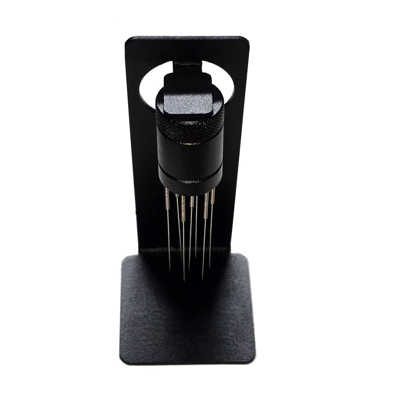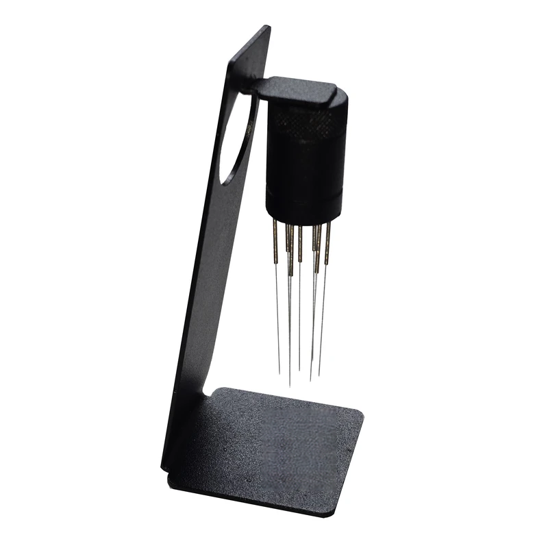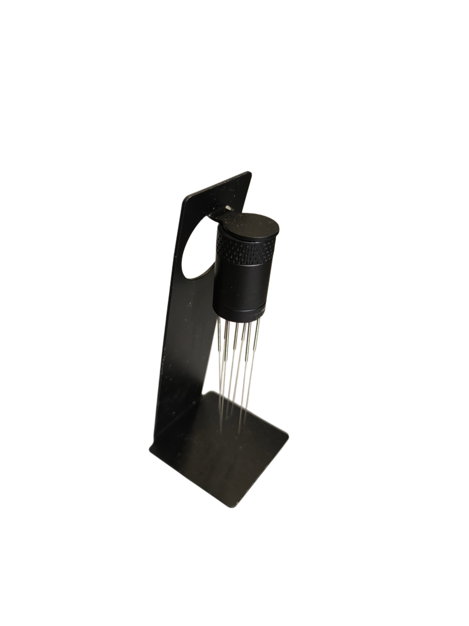 نیدل قهوه وسیلهای برای باریستاهاست که به کمک آن قهوه را در پرتافیلتر توزیع و آن را به صورت یکنواخت پخش میکنند. با استفاده از نیدل قهوه میتوانید از چسبیدن پودرهای قهوه به هم و گلولهای شدن آنها جلوگیری کنید.این ابزار ساده اما کارآمد است که به شما کمک میکند تا یک اسپرسو یا قهوه دمی باکیفیتتر و خوشطعمتر تهیه کنید.این محصول دارای 7 سوزن منعطف و فنر دار می باشد که به وسیله مگنت به پایه خود متصل می شود.