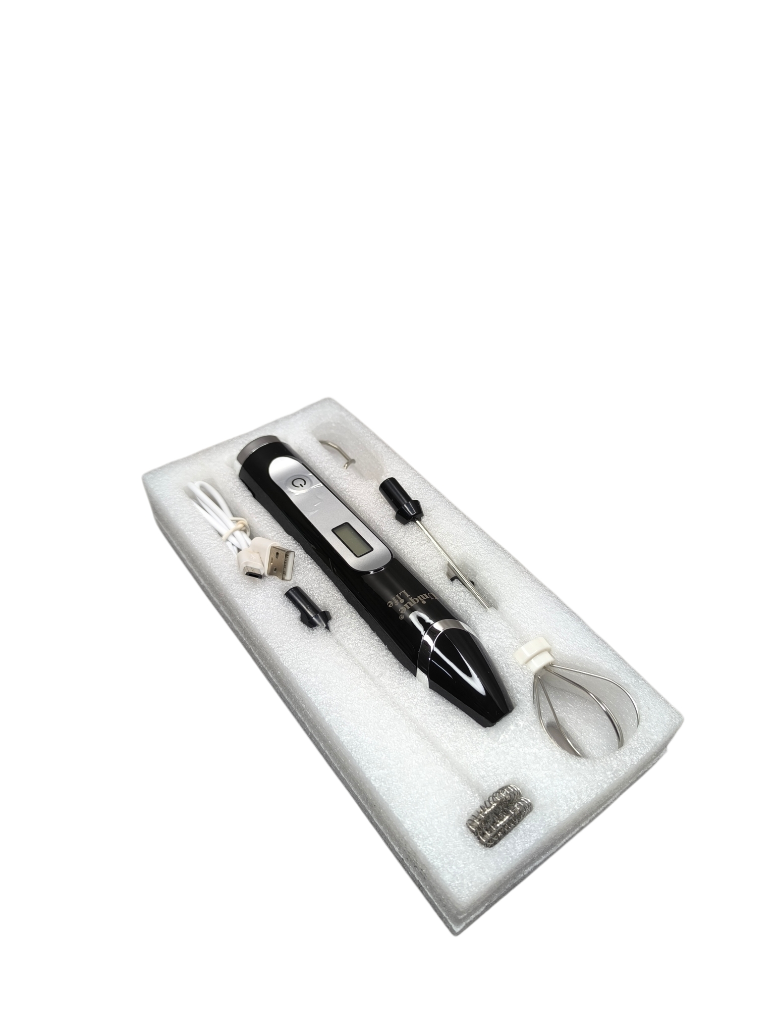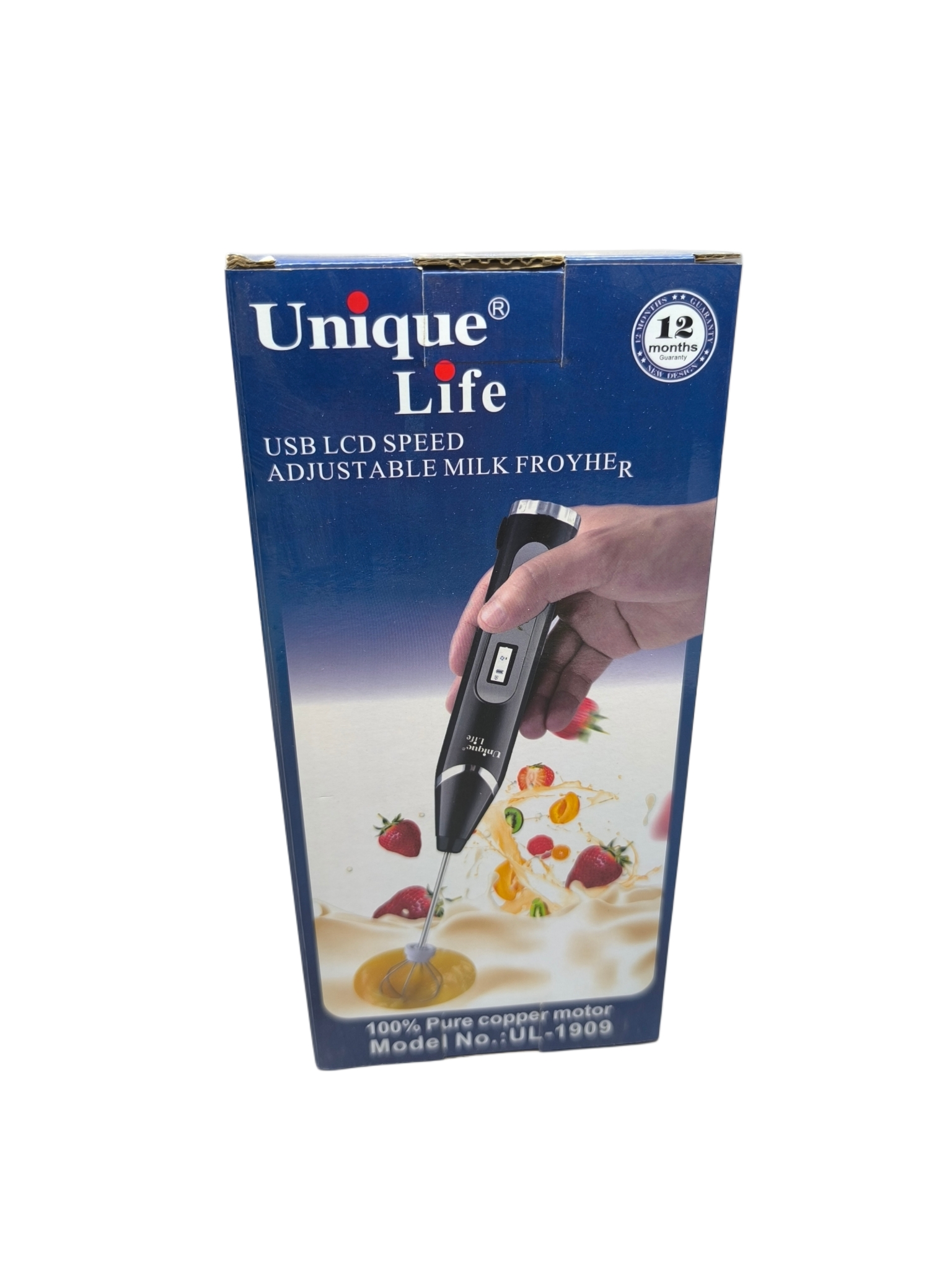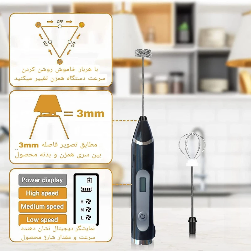 همزن شارژی UL1909 با سه سری استاندارد برای کاربریهای متنوع: سری بالون شکل برای مایعات و تخممرغ، سری فنری برای فومسازی شیر، کابل USB به میکرو USB با نمایشگر دیجیتال شارژ و سرعت، مناسب برای آشپزخانه منزل، کافههای کوچک و کاربریهای پرتحرک در هر دو نوشیدنی سرد و گرم.سری بالون شکل: مناسب برای همزدن مایعات، مخلوطهای خامهای و همزدن تخممرغ با بافت سبک و یکدست سری فنری: ایدهآل برای فومسازی شیر و ایجاد کف خامهای با بافت غنی طراحی چندکاره: تعویض سریع سریها بدون ابزار اضافی .همزدن نوشیدنیهای گرم مانند کاپوچینو و لاته مخلوط کردن نوشیدنیهای سرد و خامهای.نشانگر شارژ باتری، سرعت و وضعیت عملکردکارکرد ساده با یک لمس برای تغییر سرعت دسته ارگونومیک و سبک برای کاربری طولانی بدون خستگی گرمایش حرارتی کم و ایمنی در استفاده روزمره