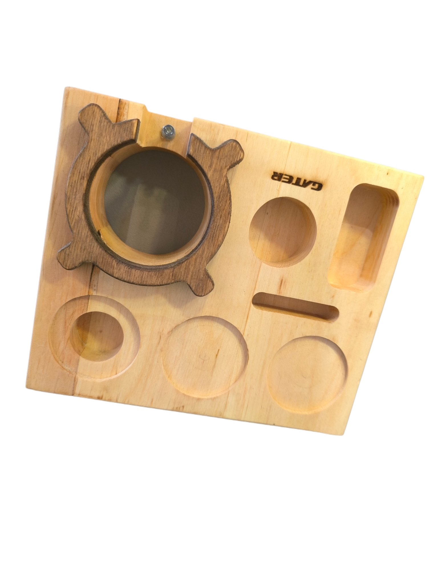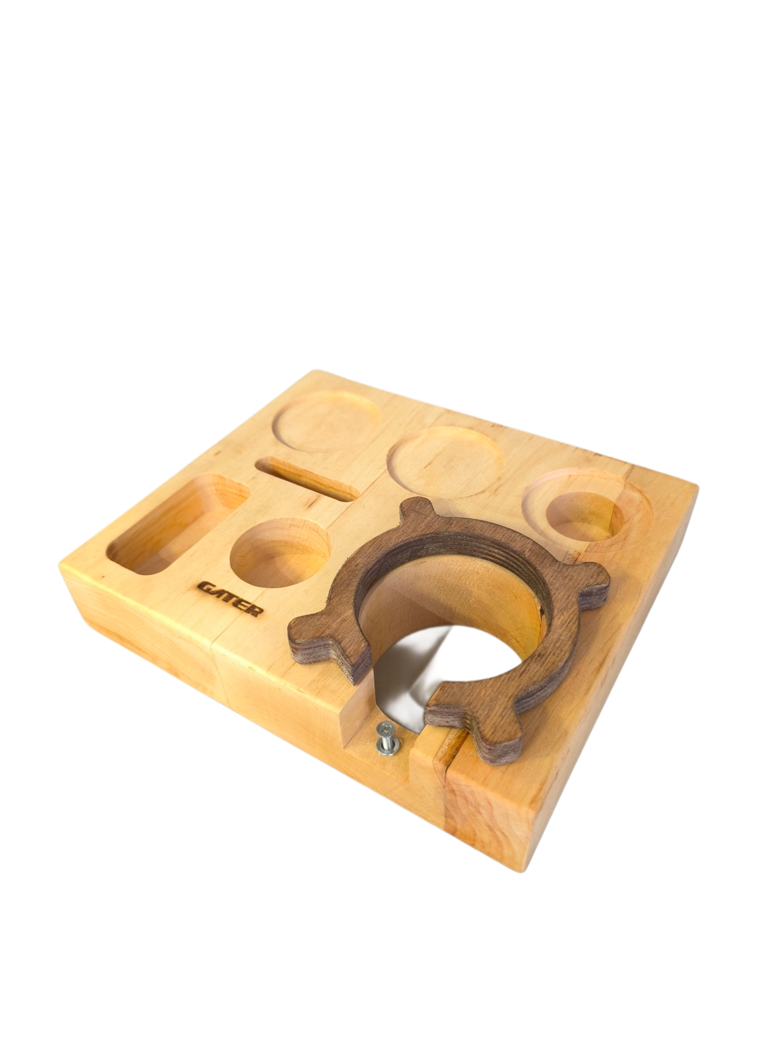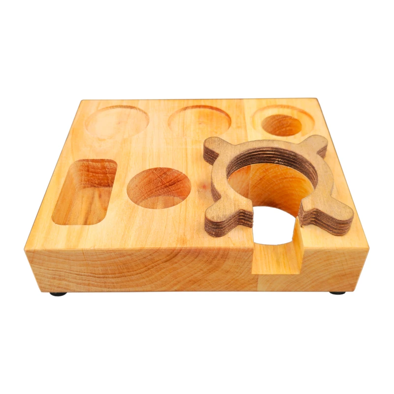 استند نظم دهنده لوازم قهوه ساز مدل WL-51 – چوب طبیعی توسکا استند نظمدهنده قهوه ساخته شده از چوب طبیعی توسکا با پایههای سیلیکونی، طراحی برای نظمدهی به پرتافیلتر، تمپر، لولر و سایر لوازم سرو قهوه. دارای سطحی مقاوم و پوشش روغن خوراکی برای دوام بیشتر و جلوگیری از لغزش، مناسب برای استفاده خانگی با سایز 51.ویژگیهای کلیدیپایههای مستحکم و پایدار: 4 پایه سیلیکونی در زیر استند که از حرکت روی سطح جلوگیری کرده و ارتجاعی بودن پایهها به بهبود عملکرد تمپ کمک میکندمواد با کیفیت: ساختهشده از چوب طبیعی توسکا با پوشش روغن خوراکی برای دوام و ایمنی استفاده با مواد غذایی طراحی زیبا و کاربردی: ترکیب زیبایی و کارایی برای فضای خانه یا کافه فضای بهینه: دارای فضاهای مناسب برای پرتافیلتر، تمپر، لولر و سایر لوازم سرو قهوه نگهداری آسان: تمیزکاری با دستمال نمدار، خشککردن سریع با دستمال نخی؛ اجتناب از شویندههای سخت نمایش مناسب سایز: مخصوص سایز 51 برای استفاده خانگی